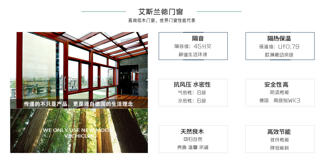 公司采用進口集成材、雙層及多層中空玻璃、密封條、進口水性漆、德國進口五金件加之現(xiàn)代木窗在工藝上的科學改進,使產(chǎn)品智能環(huán)保,更具競爭力。同時“艾斯蘭德”歐式木窗具有保溫、節(jié)能、隔音降噪、開啟方式多樣安全、外觀高雅等優(yōu)點,使現(xiàn)代家居裝配置有了很大提升,為家增加亮點,提高樓盤檔次。